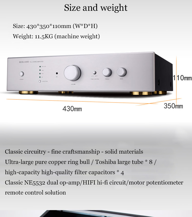 - The power tube adopts for Toshiba 5200/1943 imported from Japan, with strong load force and large power.