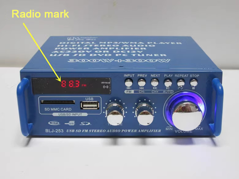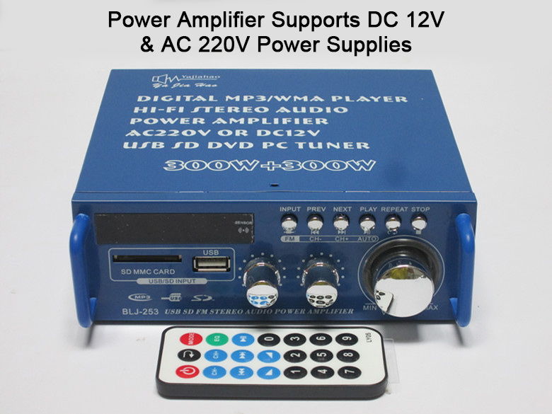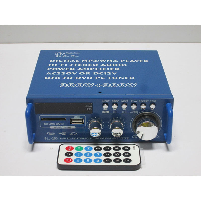 BLJ-253 300W + 300W Power Amp USB SD FM Stereo Audio Power Amplifier (Blue) for DC 12V & AC 220V