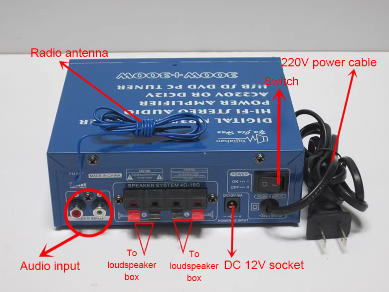 - Stereo amplifier supports SD card, USB drive and single cycle