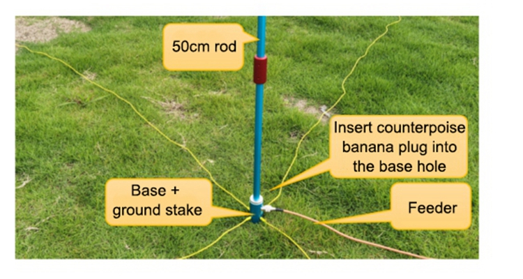 - Step 1: Take the 50cm rod, base and ground stake out of its protective sleeve, install the 50cm rod into the threaded hole of the base, and plug the ground stake into the ground.
