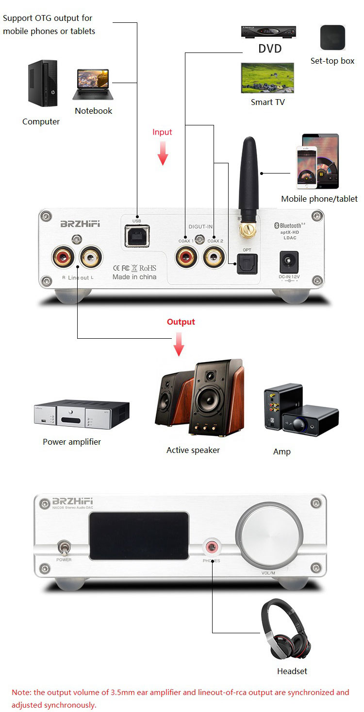 - Careful hard decoding design. Use digital shaping technology for dual AK4493 multi-function DSD Bluetooth decoder, soft control for ARM, DSD hard solution, CSR8675 Bluetooth 5.0 supports for APTX, APTX-HD, LDAC, USB receiver for Italian Amanero solution, TPA6120 professional headphones Amplifier. Small size, exquisite workmanship, and easy to use.