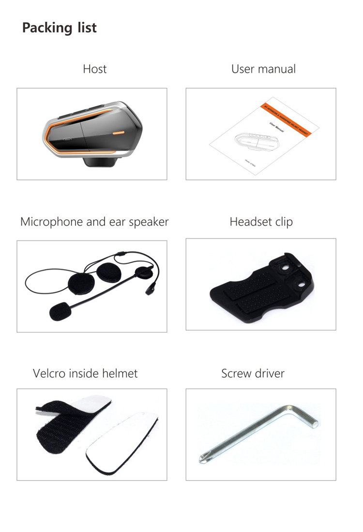 Bluetooth Motorcycle Helmet Intercom Bluetooth Headset Waterproof with FM Radio QTBE6
