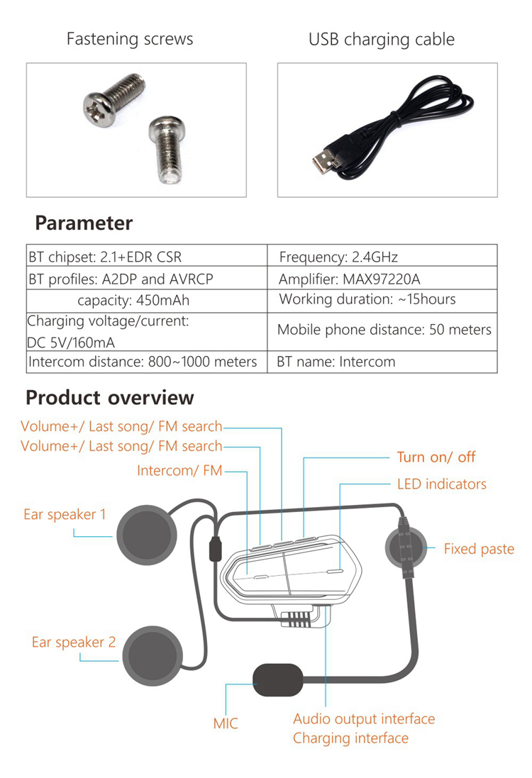 In order to make riding safer and easier, this BT based wireless intercom and handsfree helmet headset is designed as an intercom system for communication between rider and passenger, or two bike riders, as well as remote operations for BT mobile phone calling and stereo music playing. The inside CSR BR chipset and MAXIM integrated headphone amplifier provide a better experience of intercom, FM radio, phone calling and stereo music playing, Its delicate, small and water-proof design makes this product be a good companion on your riding journey.