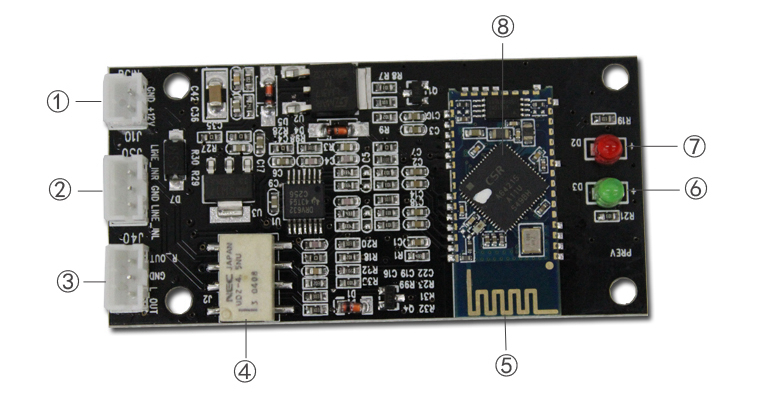 ⑧ CSR64215 Bluetooth solution, supports APT-X lossless signal reception.