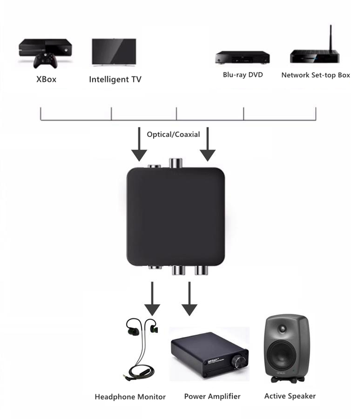 - DAC30 is a new generation coaxial fiber optic receiving processor that supports up to 192KHZ 24BIT audio, with audio lossless output distortion as low as 0.001%. It is very convenient to connect the Bluetooth and fiber optic interfaces of various player devices such as TVs, TV boxes, for PS4, and DVDs, and to connect power amplifiers or active speakers through RCA output.