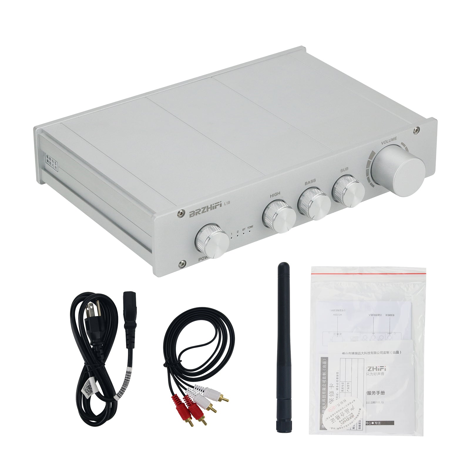 BRZHIFI L1B Frosted Silvery Pure Class A 2.0/2.1 Channel HiFi Audio Power Amplifier Bluetooth5.0 Input