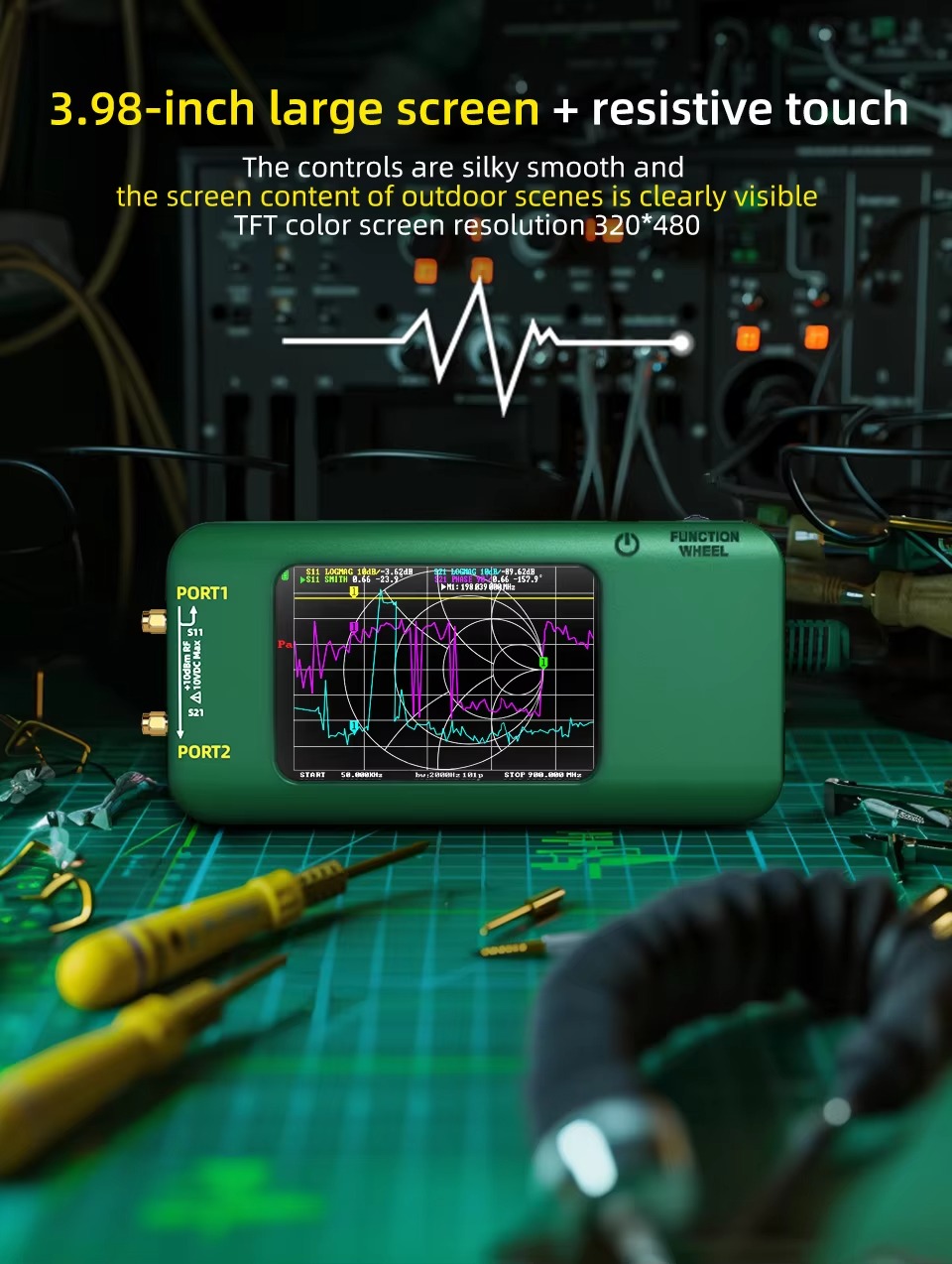 BSIDE P5 is a perfect vector network analyzer. It is small, handheld, and features a stand-alone 3.98-inch LCD display. It is equipped with a portable, built-in 3000mAh lithium battery and supports a maximum charging current of 2A.