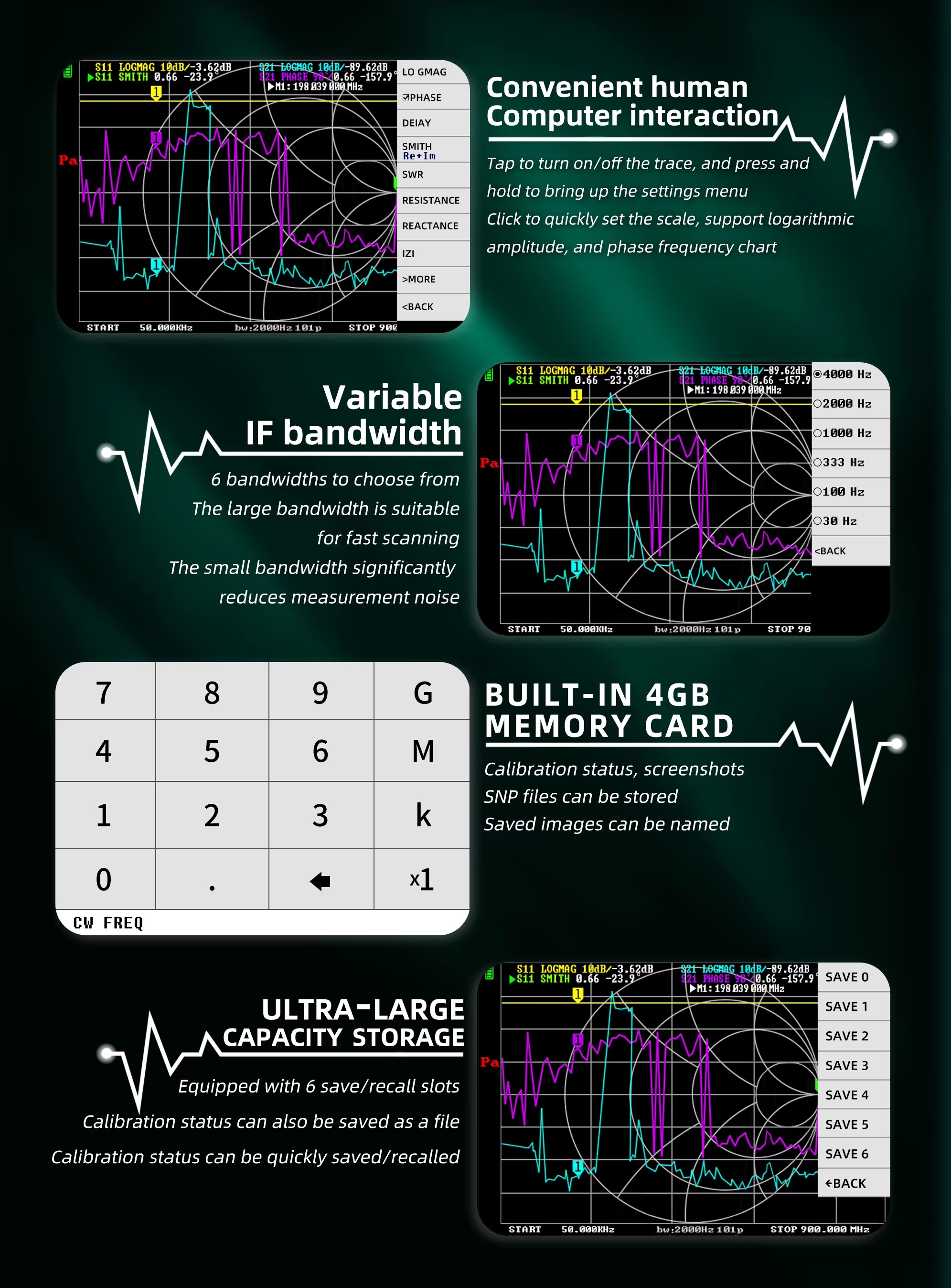 BSIDE P5 10KHz-1.5GHz Vector Network Analyzer VNA Spectrum Analyzer with 3.98" Screen & SD Card Slot