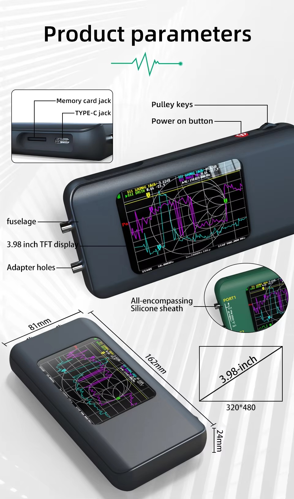 * Display: 3.98-inch TFT color screen (320*480)