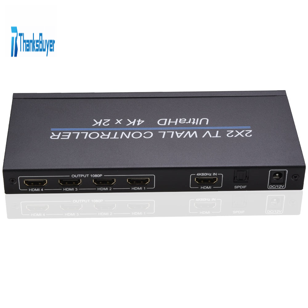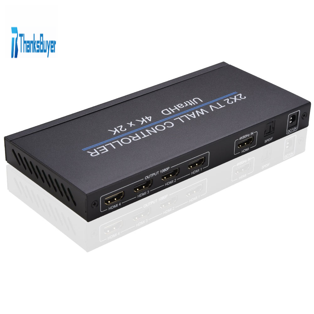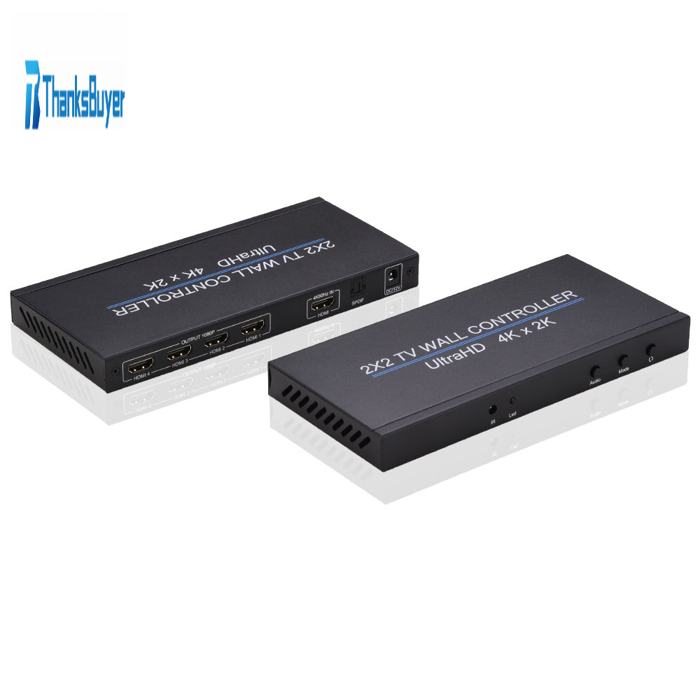 The 2x2 TV wall controller supports 1ch HDMI input and 4ch HDMI output. Its main function is to divide a complete HDMI, HD image signal into 4 blocks and assign to 4cps video display units (such as rear projection unit, LCD TV, etc.). Complete with 4 HDMI high-definition video display units to form a large dynamic image screen.