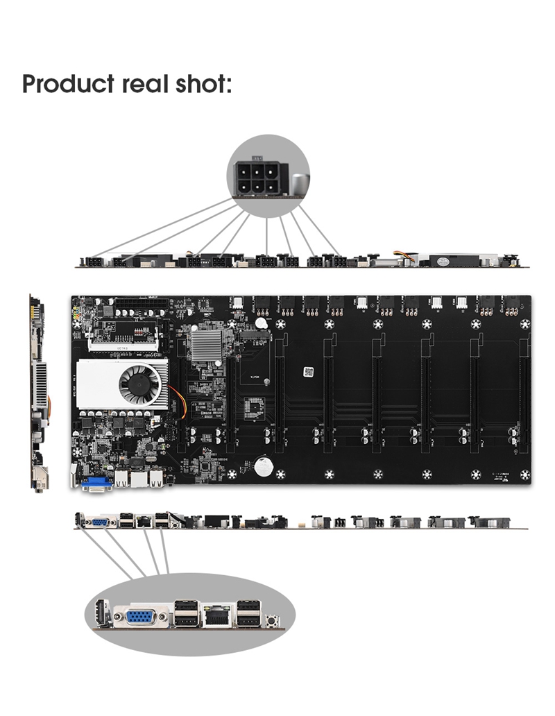BTC-37 Mining Board Mining Motherboard CPU Ethereum 8 Graphics Card Slots DDR3 Integrated Memory VGA