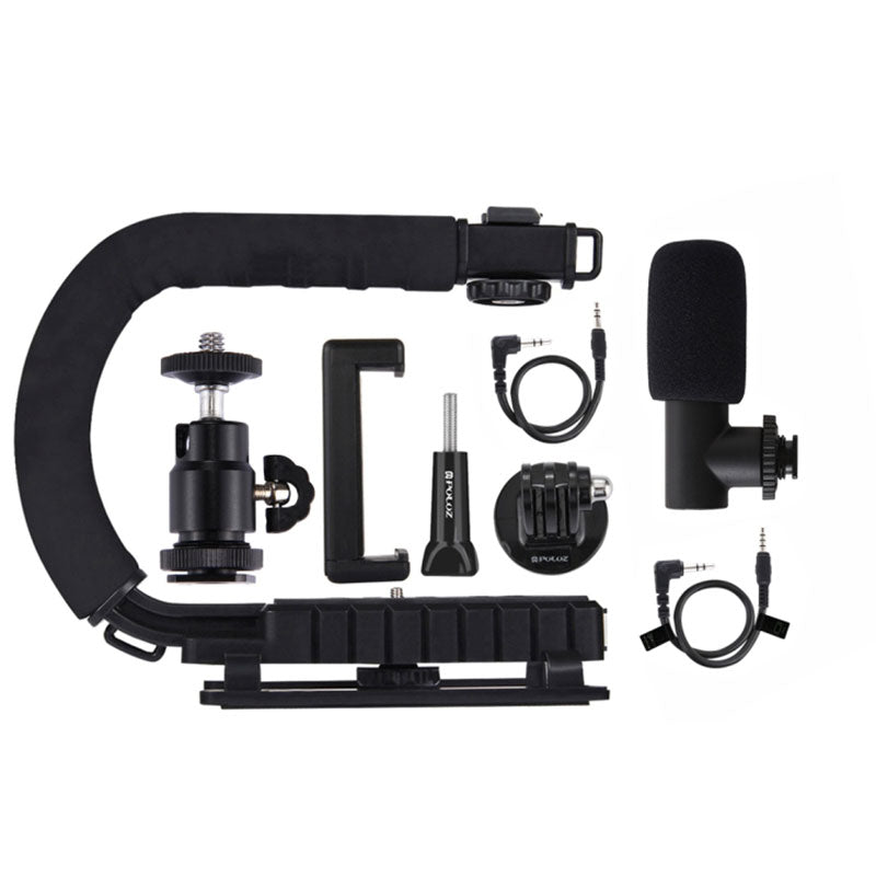 Camera Stabilizer w/ Microphone & Cold Shoe Tripod Head For All SLR Cameras Home DV Camera PKT3011