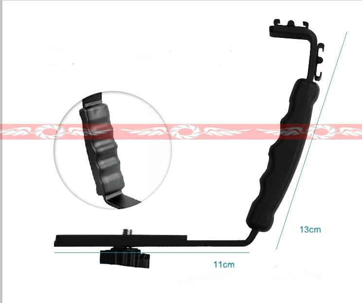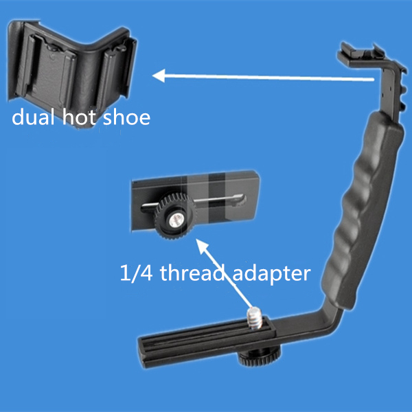 Camera Stand L-Shaped Angle 2 Shoe DV Flash Bracket with Dual Hot Shoe for DSLR Camera Camcorders