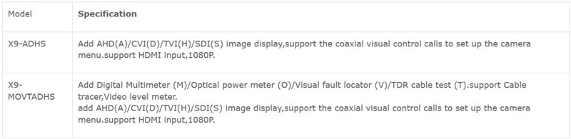 CCTV Tester Monitor AHD/CVI/TVI/SDI Multimeter IP Camera Tester X9-MOVTADHS