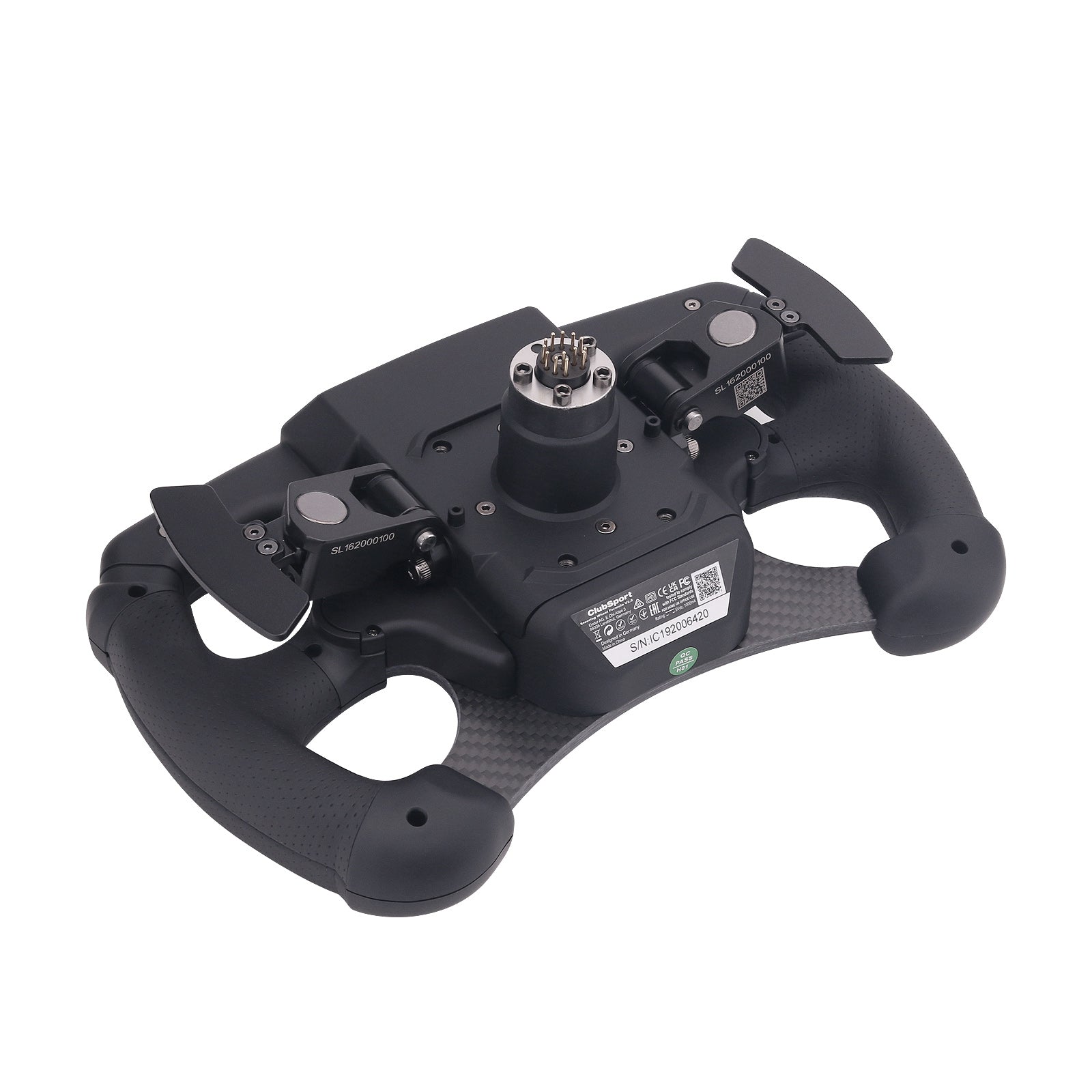 - Add F1-style clutch paddles. The ClubSport Steering Wheel Formula V2.5 can be upgraded to the Podium Advanced Paddle Module, which adds a dual clutch paddle system and two pairs of magnetic paddles with 3 mm-thick carbon fibre plates.