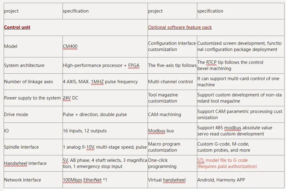 - Allows for custom G-code definitions and supports servo spindle and rigid tapping.