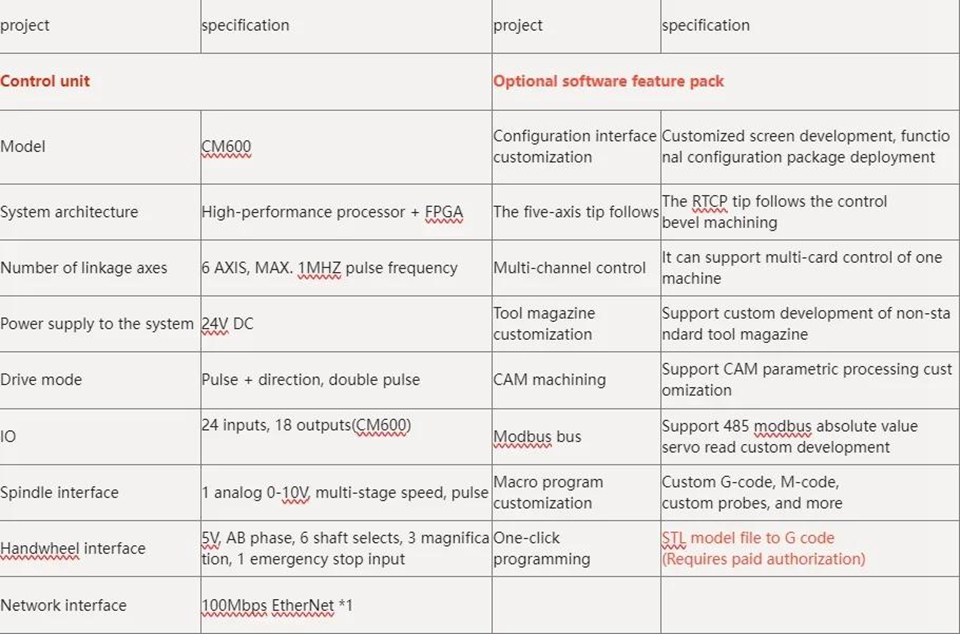 - Allows for custom G-code definitions and supports servo spindle and rigid tapping.