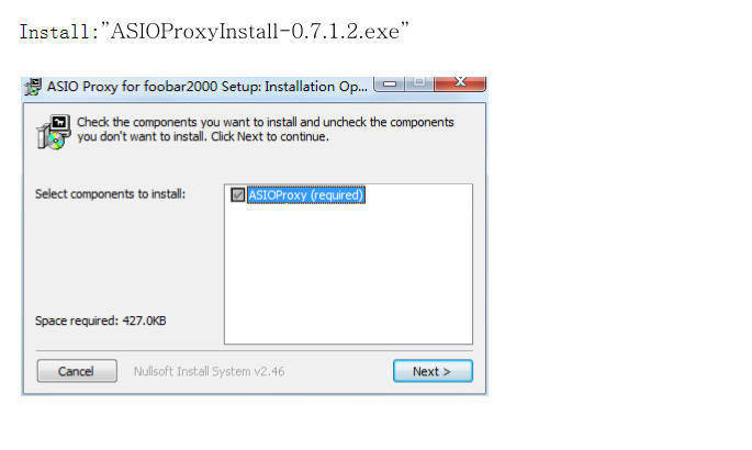 2. Install the "ASIO Proxy Install-0.7.1.2.EXE file" in the folder "foo_input_sacd-0.7.1" in the plug-in package, as shown below