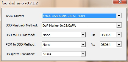 After double-clicking foo_dsd_asio, the menu that pops up is set as follows and closed