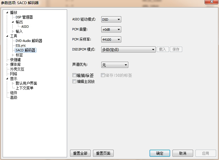 5. Then click "Tools" on the left, and select "SACD Decoder" in the drop-down menu. In the right menu, select "DSD" as the first item, and then press "OK" to complete the setting. As shown below: