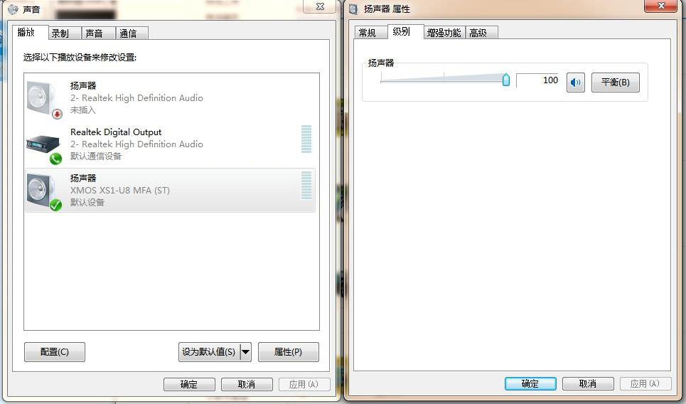 When playing DSD songs, the system volume of sound card for XMOS must be adjusted to 100 to have sound, as shown in the figure below