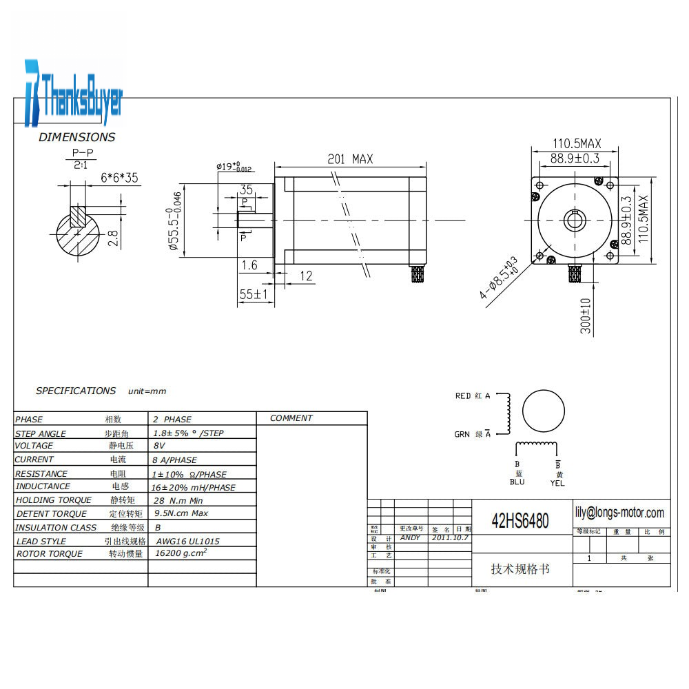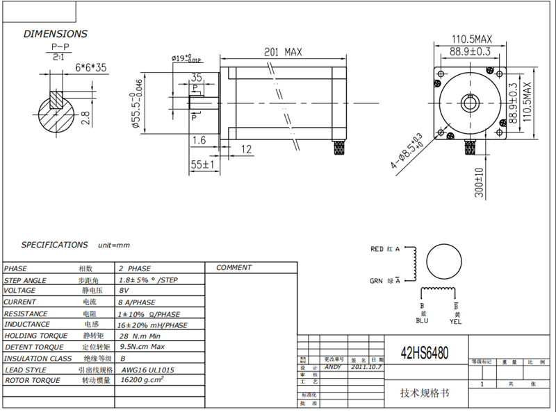 - 1 x Nema 42 Stepper Motor 4120 oz.in , 8.0A, 4 Leads, Bipolar
