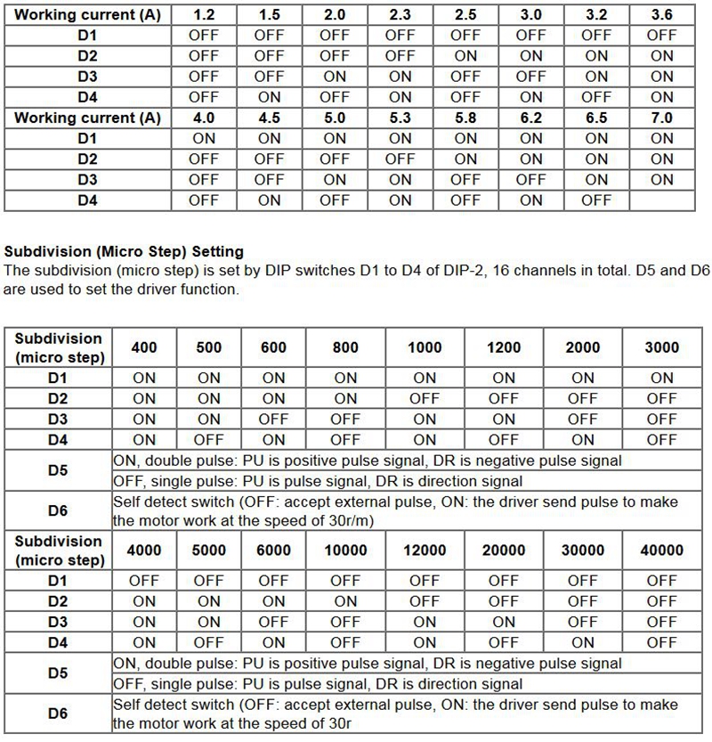 Stepper driver working current is set by DIP-1 switches.