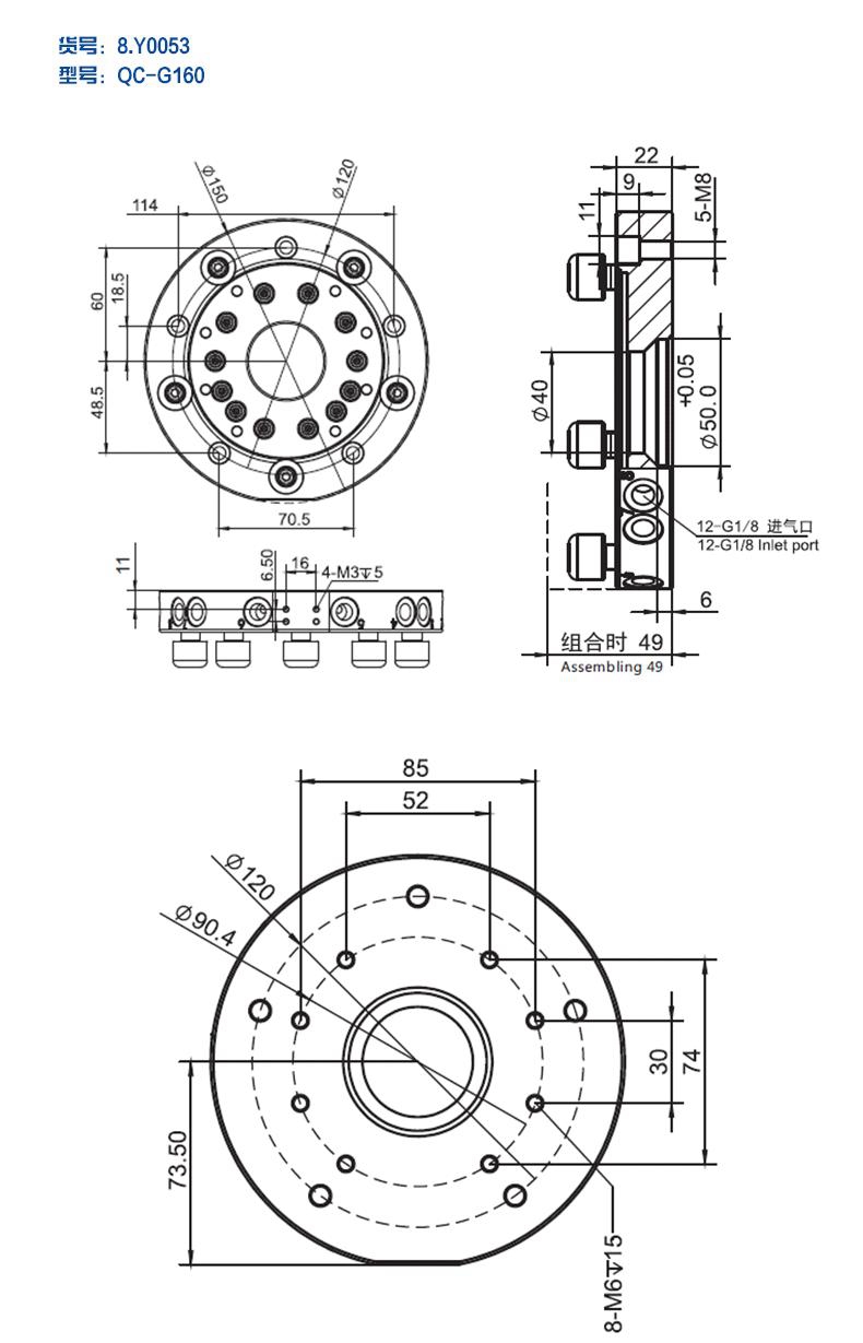 CRG QC-G160 35KG Manual Gripper Side Quick Changer High Precision Robot Mechanical Arm Tool