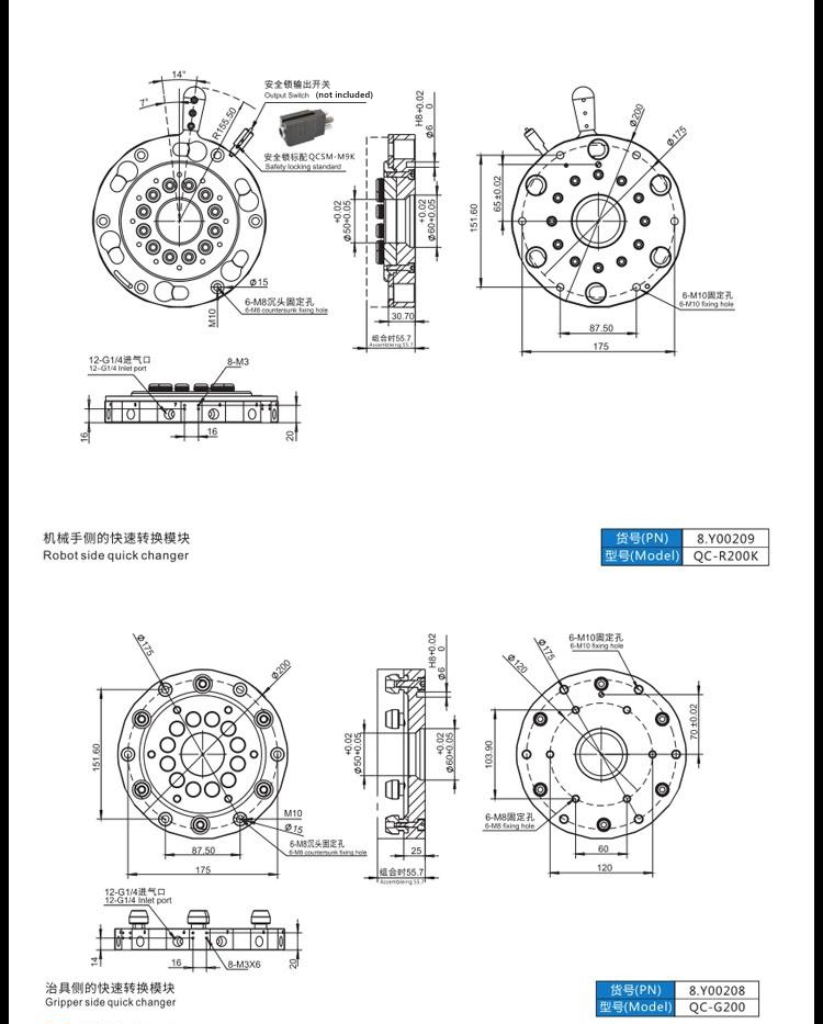 CRG QC-G200 75KG Round Manual Gripper Side Quick Changer High Precision Robot Mechanical Arm Tool