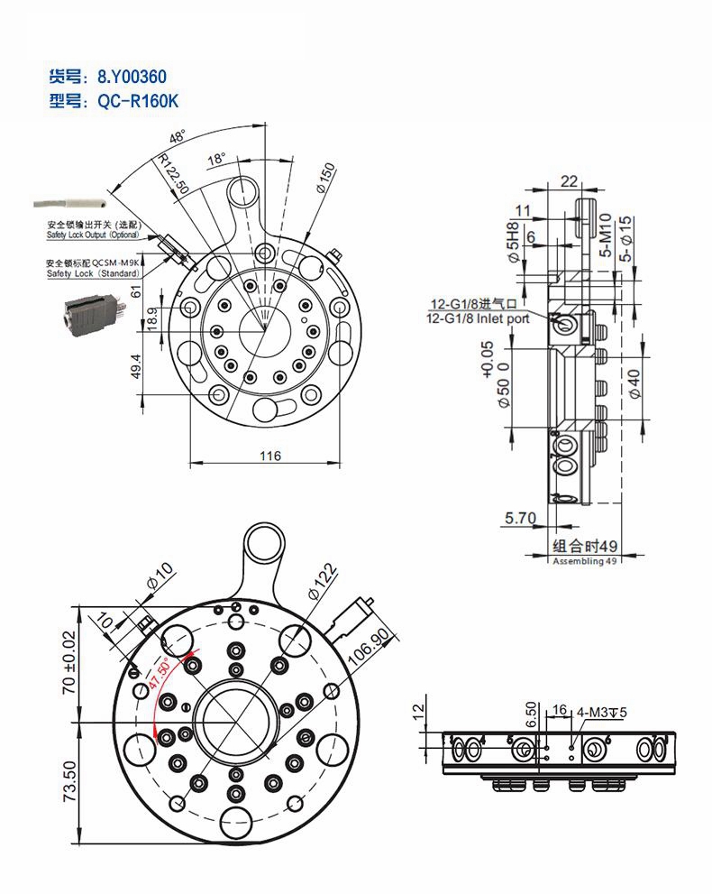 CRG QC-R160K 35KG Manual Robot Side Quick Changer High Precision Robot Mechanical Arm Tool