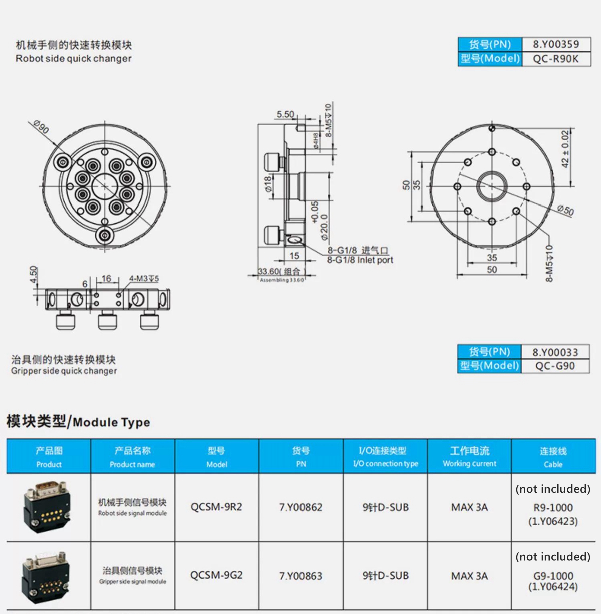 CRG QC-R90K [8.Y00359] Manual Robot Quick Changer High Precision Robot Mechanical Arm Side Tool