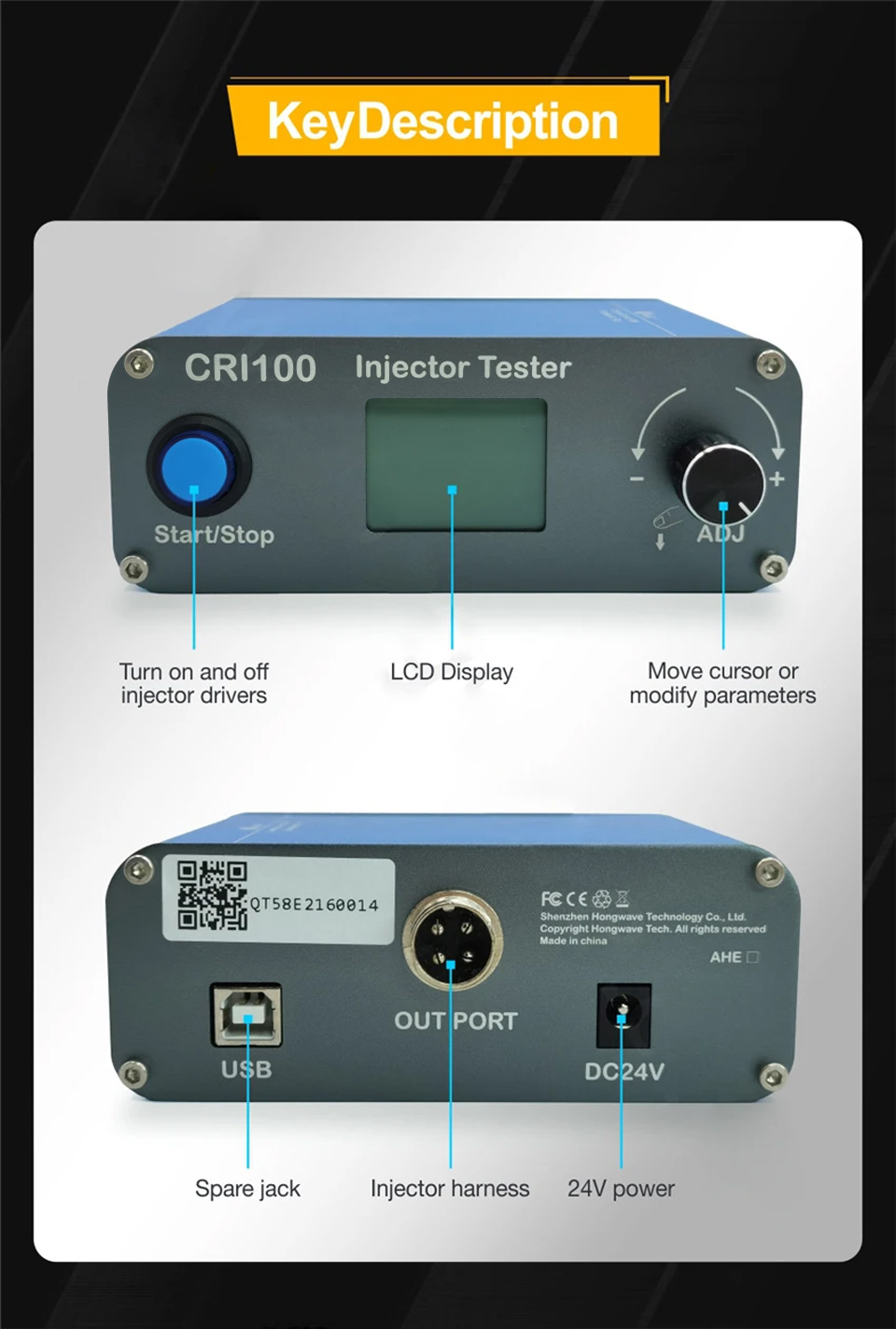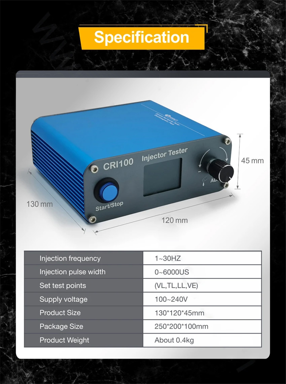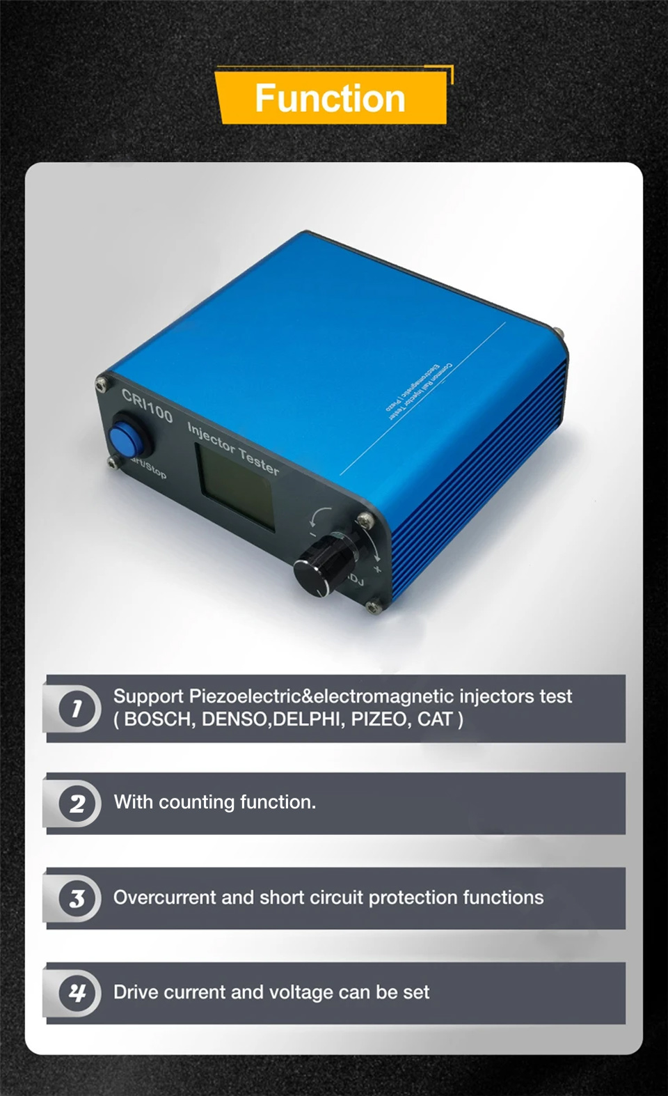 CRI100 Portable Electromagnetic Piezoelectric Injector Tester Support Counting Function with DC Alligator Clip Wire
