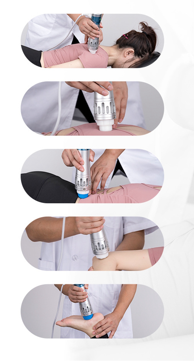 - Principle of electromagnetic shock massager: Electromagnetic lattice waves use high-voltage pulse current to generate a magnetic field through a coil, driving the projectile to move and generate shock waves, achieving focused flat shooting or scattering force deep into the fascia layer to remove adhesive muscles and fascia, and perform corresponding conditioning. Electromagnetic lattice wave is a type of plane wave. After being focused by a lens (double concave lens), the focus position of the shock wave is less drifting, and the size of the focal spot does not change much. There is no shock wave that directly impacts human tissue without being focused, avoiding the harm of direct waves to human tissue.