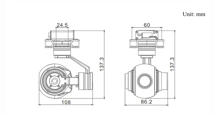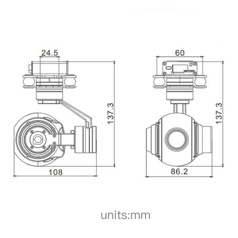 The Q10F gimbal and camera features an 10x optical zoom lens. The type 1/3 inch sensor for CMOS supports approx, 4 million effective pixels, HD 1080p video, fast auto-focus speed, small size, designed for UAV aerial photography. Factory, all the parameters have been perfectly set, you just need to install the gimbal camera to UAV, then ready to fly. The gimbal can be controlled in three directions: YAW, ROLL and PITCH , we use FOC solution can greatly compensate the vibration of UAV. The image is very stable even at ten optical zoom times. Q10F have been widely used in various fields like public security, electric power, fire, zoom aerial photography and other industries in the application of drones.