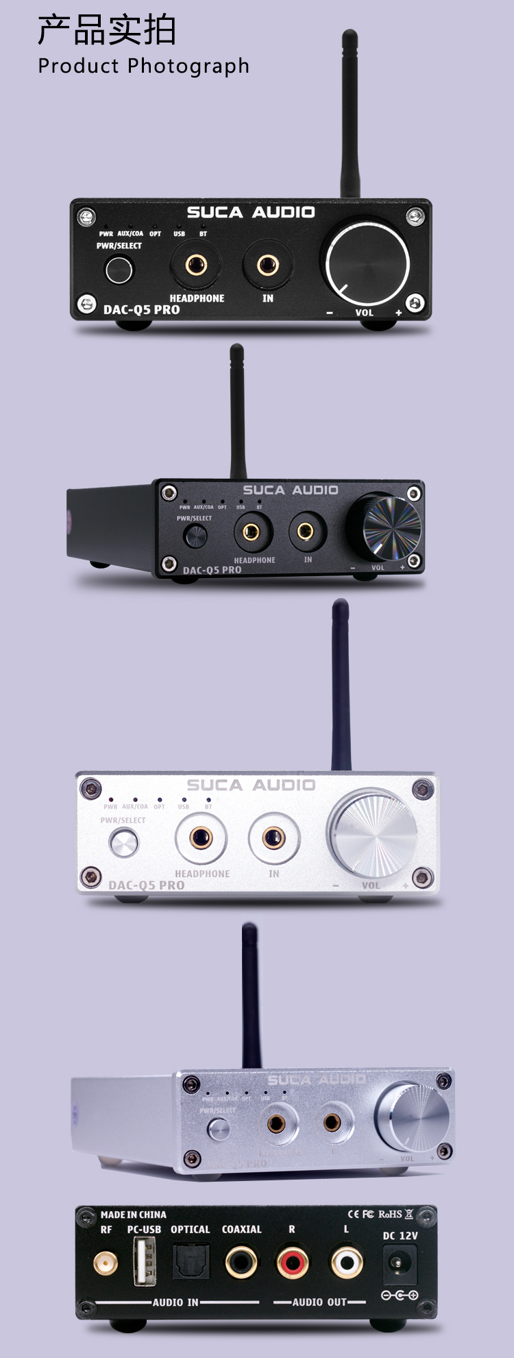 DAC-Q5 PRO Bluetooth 5.0 DAC HiFi Lossless Digital USB Turntable Headphone Amplifier DAC Black