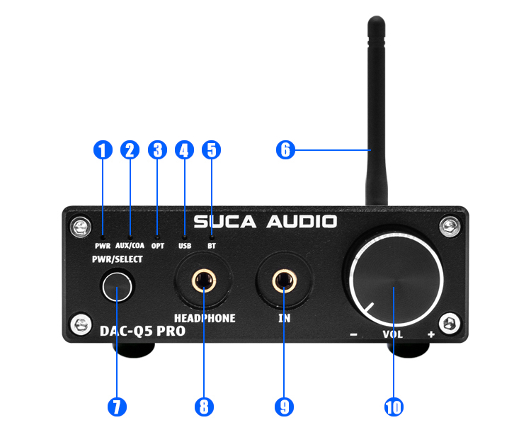 - Support sampling rate: USB-24bit/192kHz, optical/coaxial-24bit/192kHz