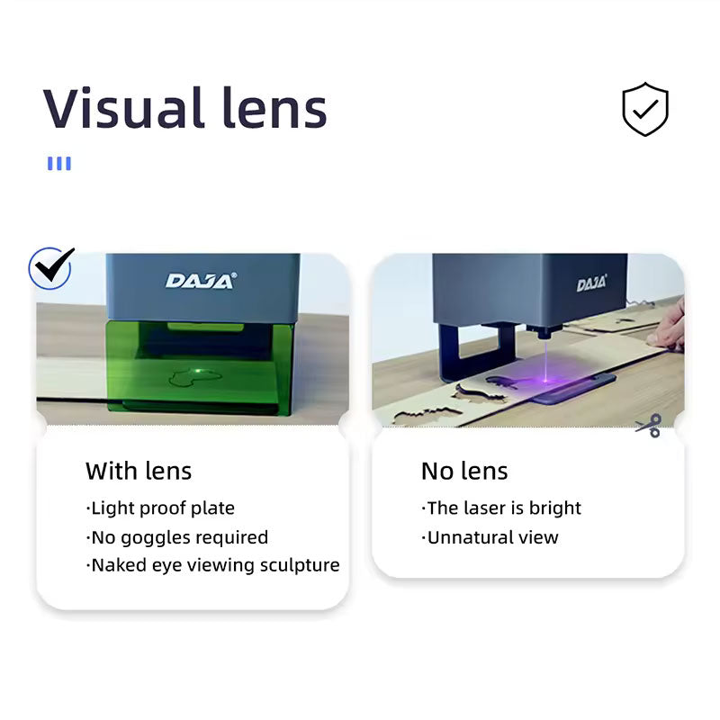 - Visual lens: The separated lens can be used as goggles, so that users can see with the naked eye, and it is convenient to observe the progress of engraving at any time