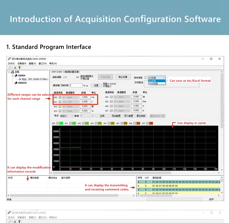 - The DAM3158A/3158 series is an 8-channel analog input with RS485 communication interface and standard Modbus RTU protocol. Easy to connect: Configuration software for KingView, Power Control, Easy Control, MCGS, etc. can also be used with touch screens for MCGS/WEINVIEW, as well as wireless DTUs.
