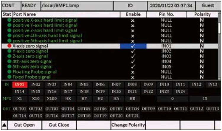 - For example, we define the IN01 as the “X-axis Zero Signal”, and when the X axis touched the limited switch, it will show as below:
