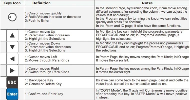 - Software alarms: Program Error, operation Error, over-travel Error, Driver Error and so on.