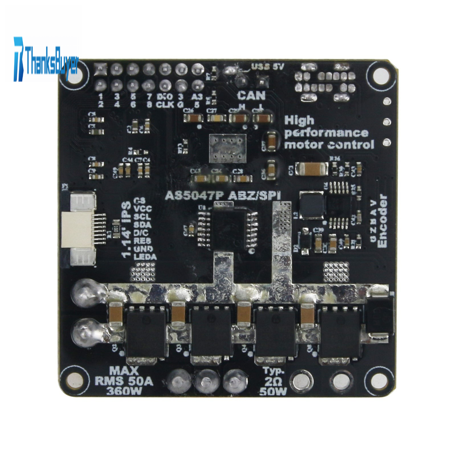 - Encoder: AS5047P onboard (optional) GH1.25 5P incremental encoder interface