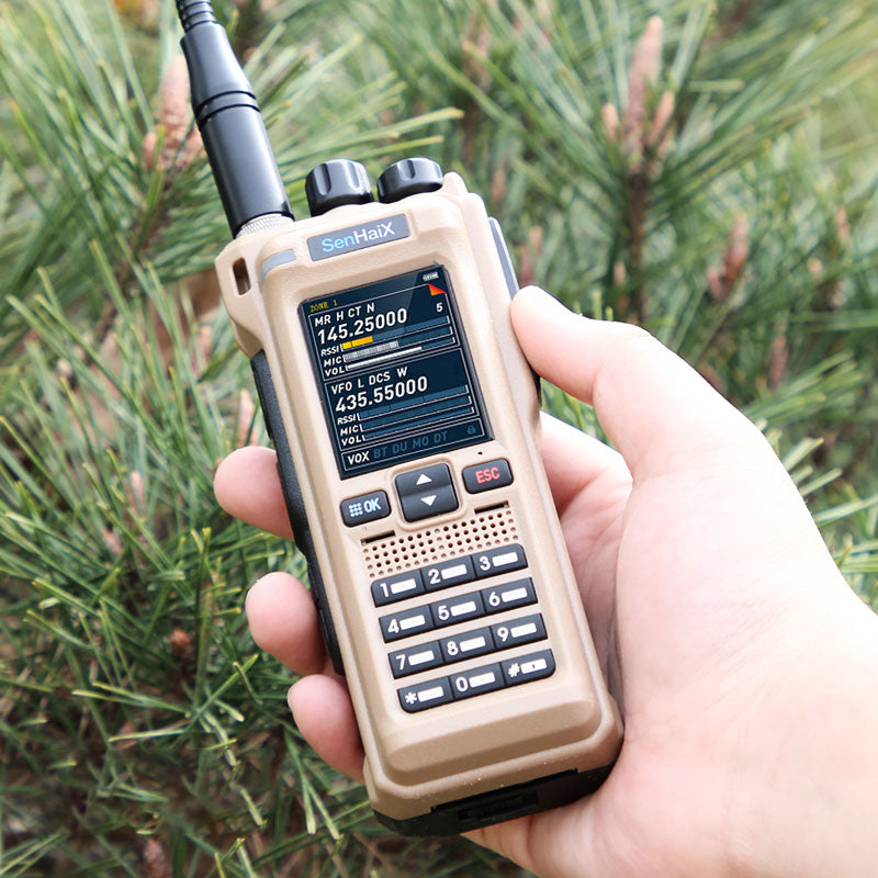 Desert Yellow GT-12 10W Multi-band Handheld Walkie Talkie 2-Inch LED Color Screen Built-in Bluetooth Support FM/AM/UHF/VHF