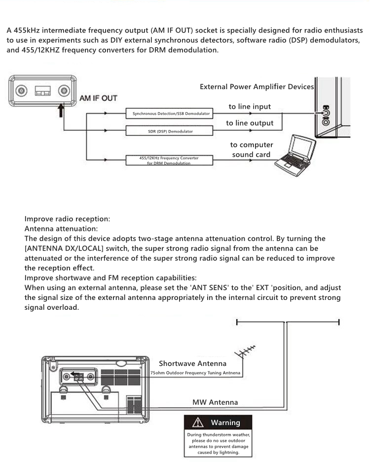 - Medium wave/short wave can adjust the RF GAIN based on the strength of the broadcast signal to achieve the best reception effect.