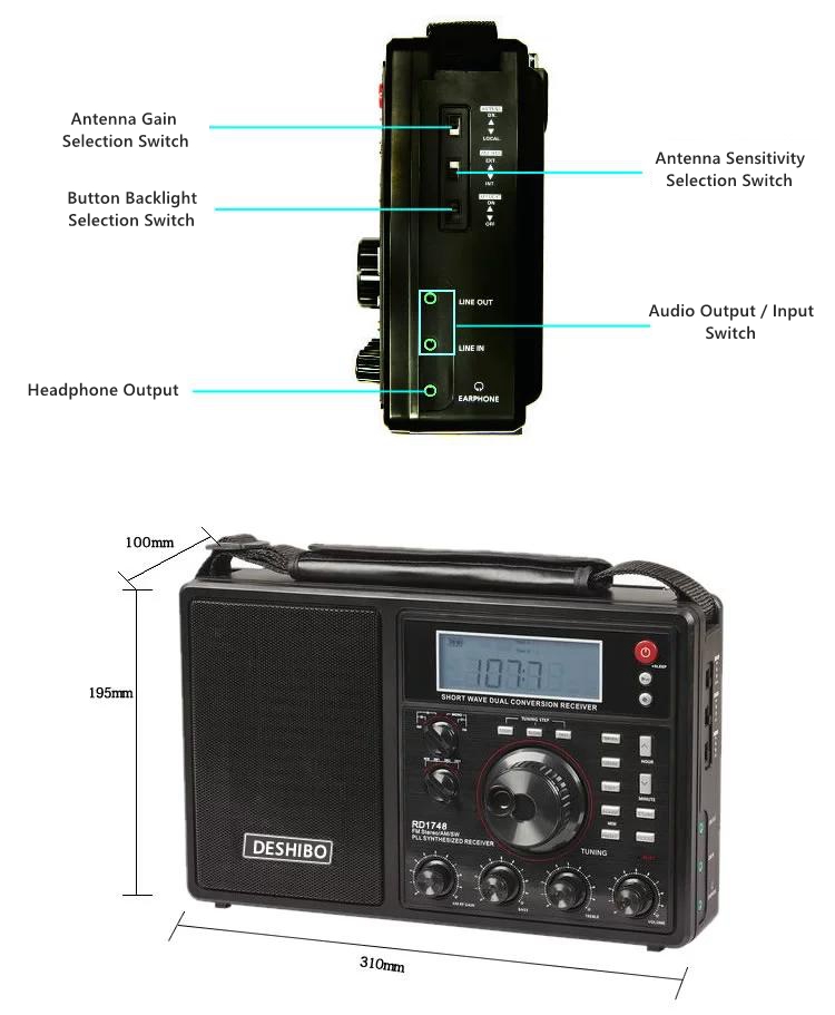 DESHIBO RD1748 Full Band Radio Second Frequency Conversion High Performance Professional Digital Tuning Radio