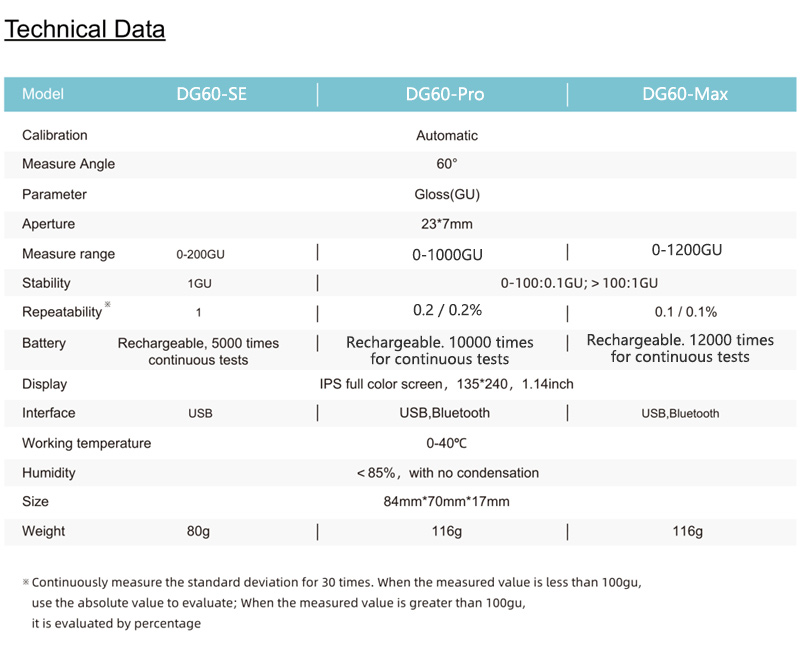 DG60-SE 0-200GU 60° Glossmeter Gloss Meter for Paint Coating Stone Marble Furniture Metal Surface