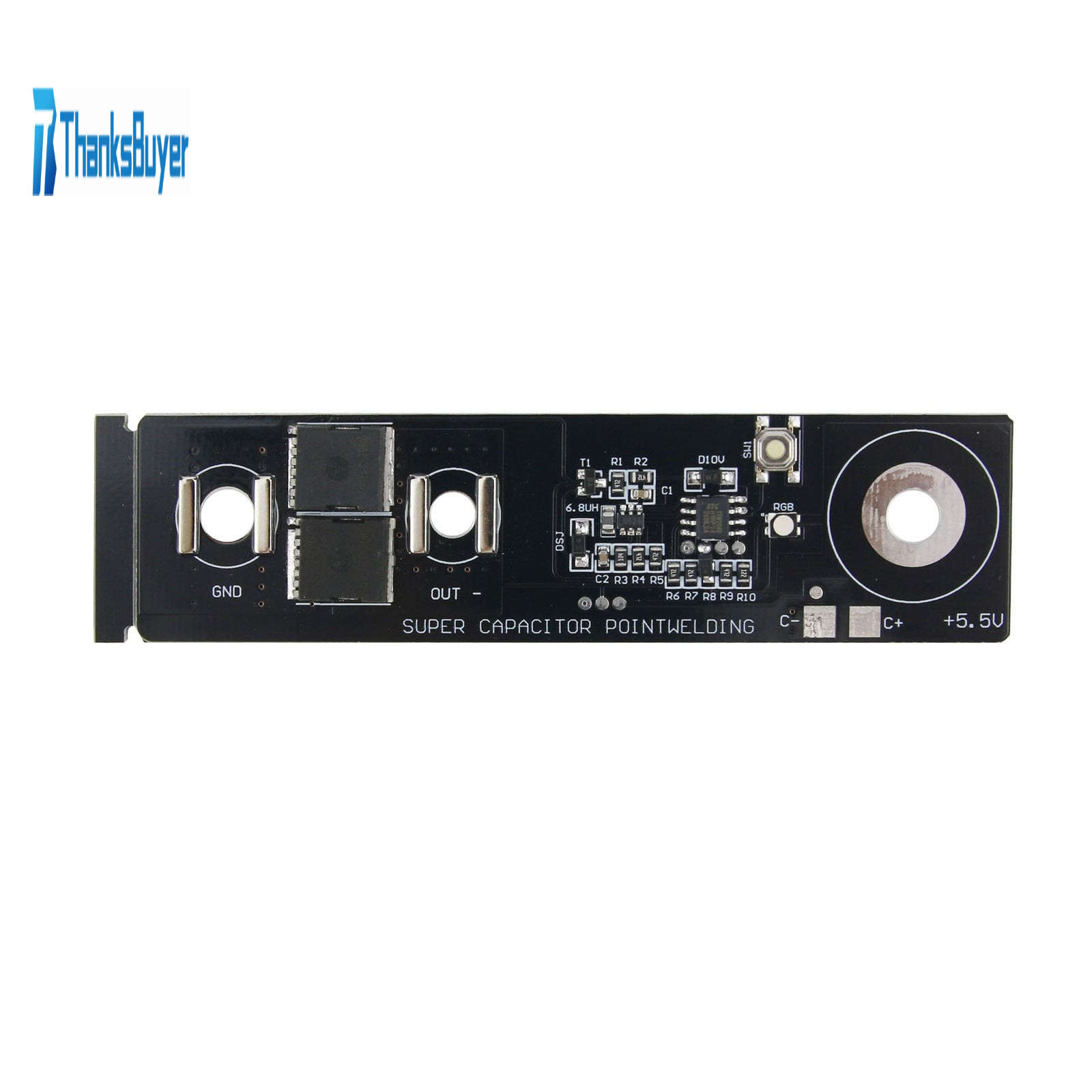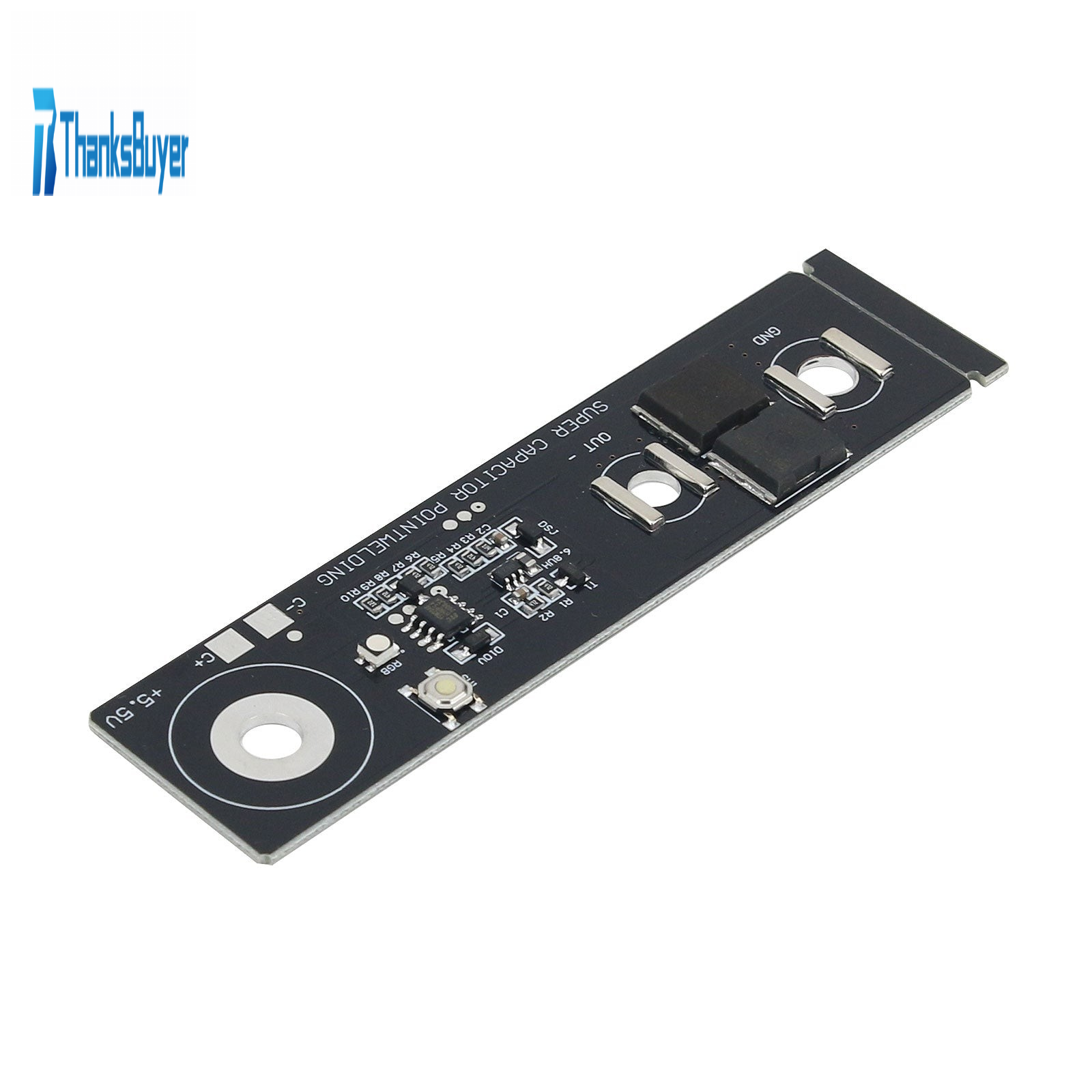 This product is suitable for connecting 2 super capacitors in series (2.8V+2.8V). It is recommended that a single capacity is 3000F or above. The circuit is precisely controlled by a MCU program. It is divided into 3 power levels. It automatically detects the contact resistance of the soldering pen and automatically triggers it. It outputs in parallel through a 300A power tube X3 and welds 0.15mm nickel plates.