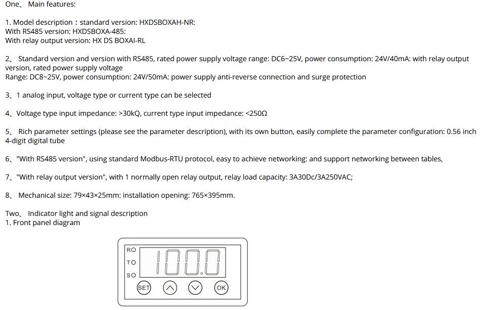 1. The meter can be called a universal analog input display meter. It can be matched with various sensors with analog output to display the actual physical quantity. Such as temperature transmitter, frequency converter, motor speed, pressure, liquid level, concentration, etc.