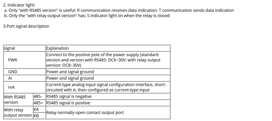 3. Default adaptation: 0-10V, 2-10V, 0-20mA, 4-20mA. By setting the bias parameter and gain parameter, it can adapt to other inputs in the range of 0-10V, or 0-20mA.