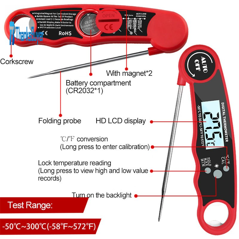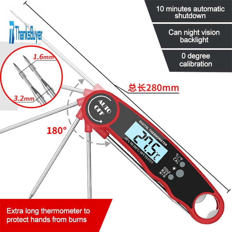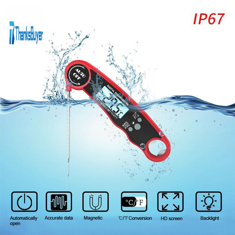 Digital Food Thermometer Foldable Waterproof Kitchen Meat Water Milk BBQ Thermometer Instant Read