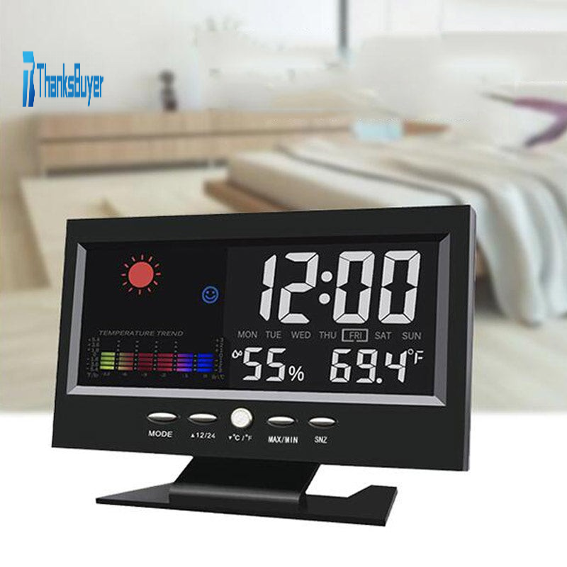 Digital Weather Station Thermometer Hygrometer Clock with LCD Display Switchable Measuring Temperature Humidity